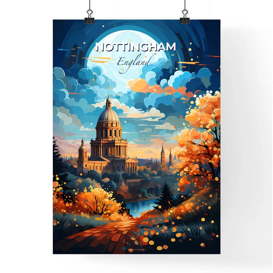 Nottingham England Skyline - A Painting Of A Building With A Dome And Trees - Customizable Travel Gift