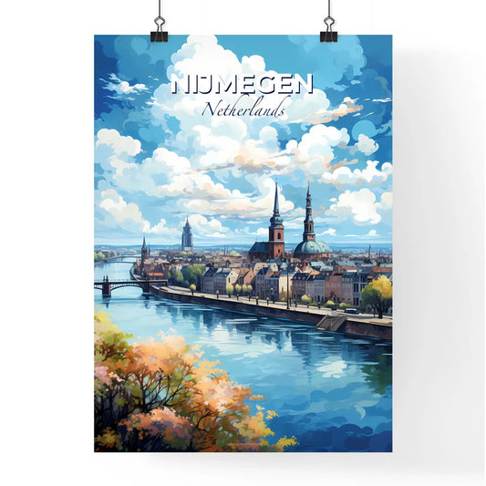 Nijmegen Netherlands Skyline - A Water Body With Buildings And Trees - Customizable Travel Gift