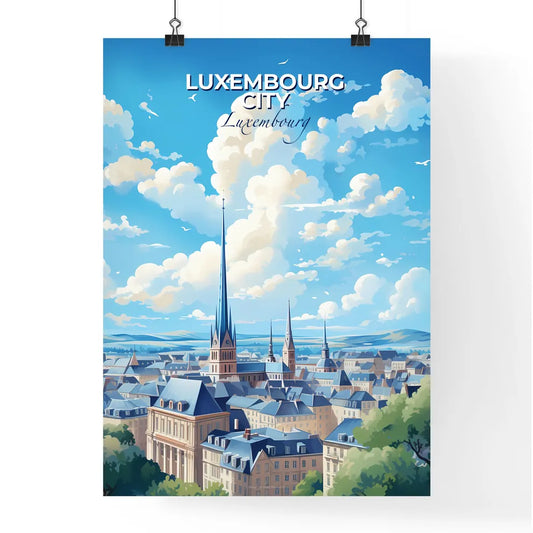 Luxembourg City Luxembourg Skyline - A City With A Spire And Trees - Customizable Travel Gift
