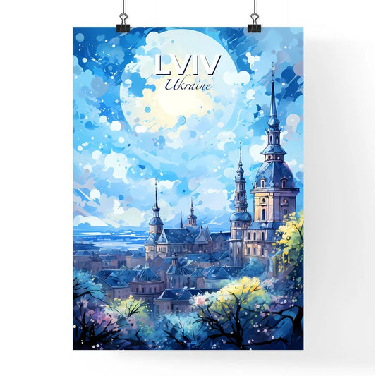 Lviv Ukraine Skyline - A Painting Of A City With A Large Building - Customizable Travel Gift