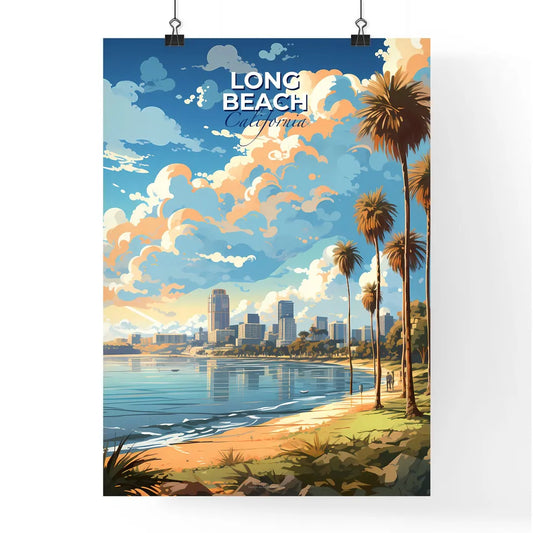 Long Beach California Skyline - A Beach With Palm Trees And A City In The Background - Customizable Travel Gift