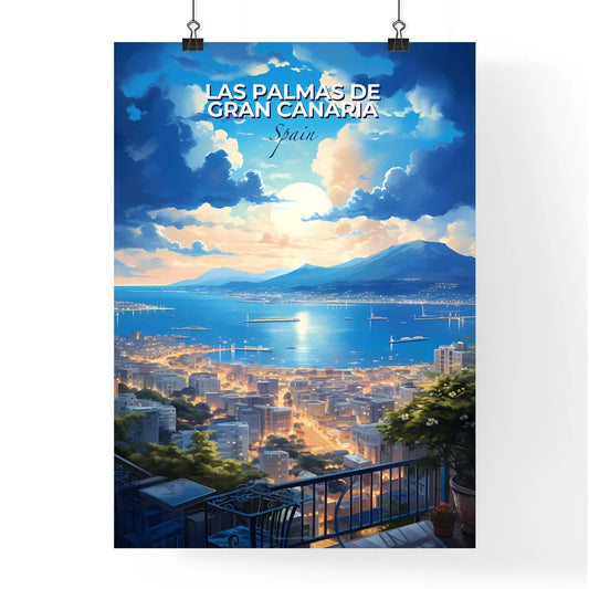 Las Palmas de Gran Canaria Spain Skyline - A Cityscape With A Body Of Water And Mountains - Customizable Travel Gift
