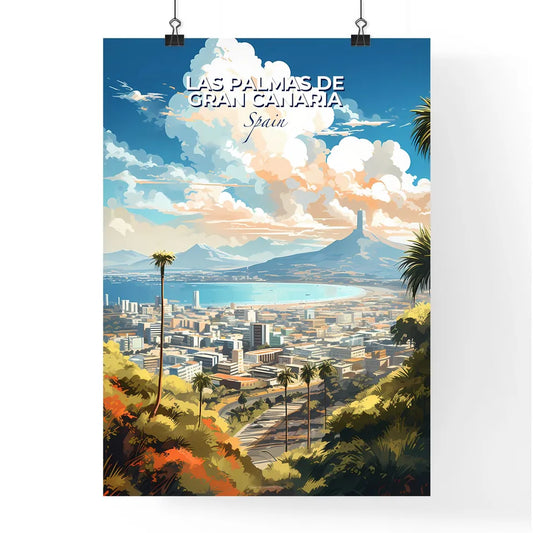 Las Palmas de Gran Canaria Spain Skyline - A Landscape Of A City With Palm Trees And A Mountain In The Background - Customizable Travel Gift