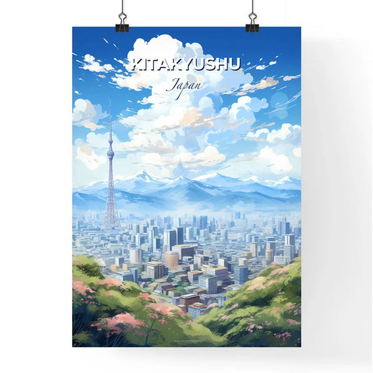 Kitakyushu Japan Skyline - A City Landscape With Mountains And A Tower - Customizable Travel Gift