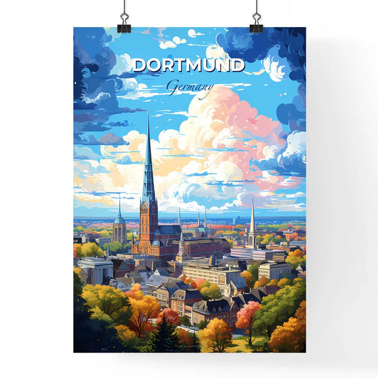 Dortmund Germany Skyline - A City With A Tall Spire And Trees - Customizable Travel Gift