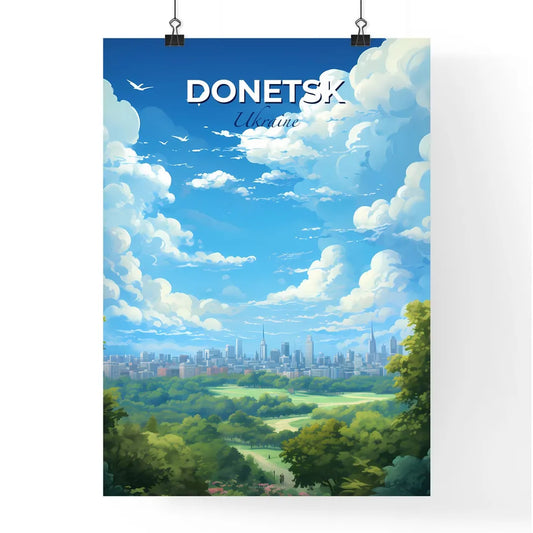 Donetsk Ukraine Skyline - A City Landscape With Trees And Clouds - Customizable Travel Gift