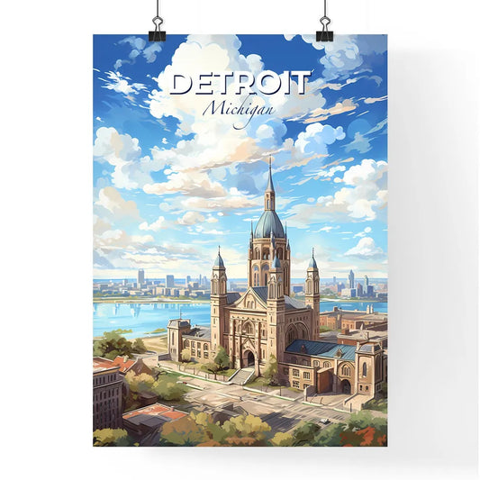 Detroit Michigan Skyline - A Large Building With A Tower And A Body Of Water - Customizable Travel Gift