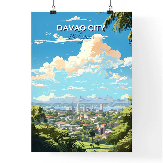 Davao City Philippines Skyline - A Landscape Of A City With Trees And A Mountain In The Background - Customizable Travel Gift