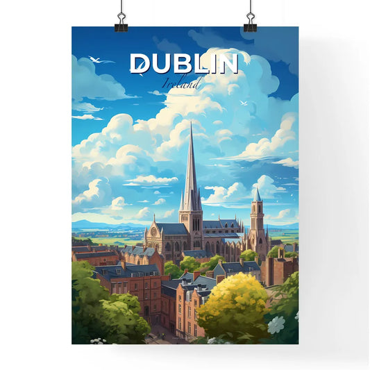 Dublin Ireland Sklyine - A Church With A Steeple And Trees - Customizable Travel Gift