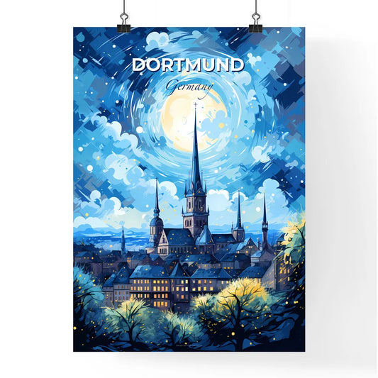 Dortmund Germany Skyline - A Building With A Spire And A Moon In The Sky - Customizable Travel Gift