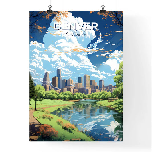 Denver Colorado Skyline - A Cityscape With Trees And A Pond - Customizable Travel Gift