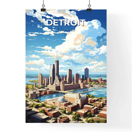 Detroit Michigan Skyline - A City With A Body Of Water And Clouds - Customizable Travel Gift