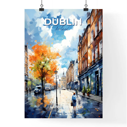 Dublin Ireland Sklyine - A Street With Buildings And People Walking On It - Customizable Travel Gift