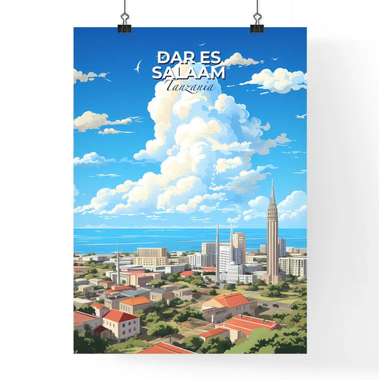Dar es Salaam Tanzania Skyline - A City With A Tall Spire And Trees And A Body Of Water - Customizable Travel Gift