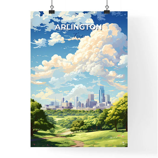 Arlington Texas Skyline - A Landscape Of A City With Trees And A Blue Sky With Clouds - Customizable Travel Gift