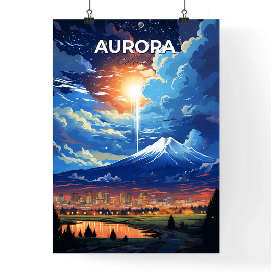 Aurora Colorado Skyline - A Mountain With A Bright Light Coming From It - Customizable Travel Gift