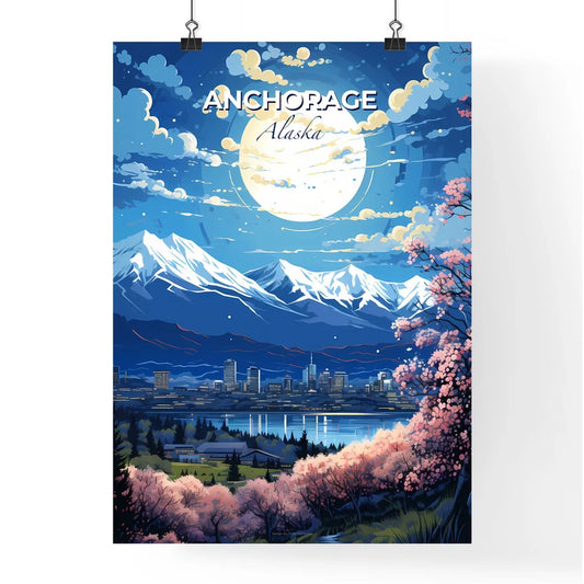 Anchorage Alaska Skyline - A Full Moon Over A City - Customizable Travel Gift