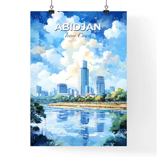 Abidjan Ivory Coast Skyline - A Water Body With Trees And Buildings In The Background - Customizable Travel Gift