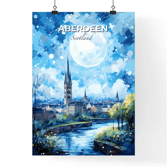 Aberdeen Scotland Skyline - A Painting Of A City With A River And A Large Moon - Customizable Travel Gift
