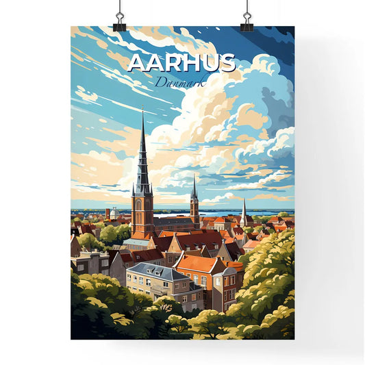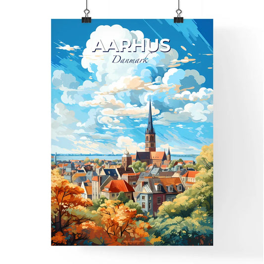 Aarhus Danmark Skyline - A City With A Church Tower - Customizable Travel Gift