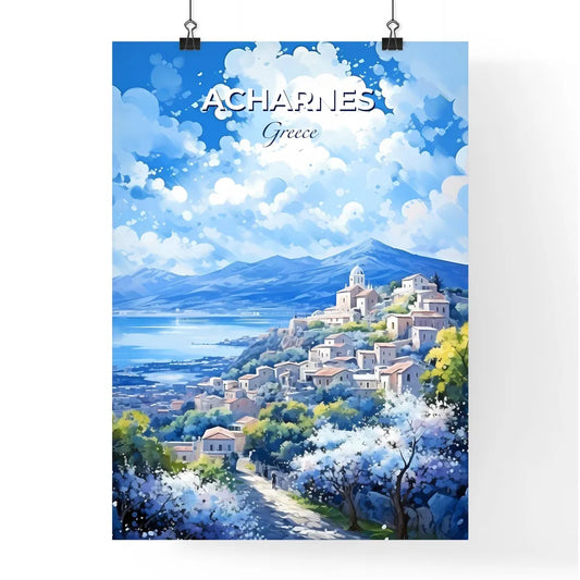 Acharnes Greece Skyline - A Painting Of A City By The Water - Customizable Travel Gift