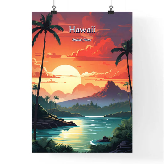 Hawaii, United States - Art print of a sunset over a river with palm trees