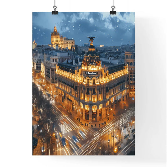 Poster of Barcelona - Art print of a cartoon of a castle on an island surrounded by water