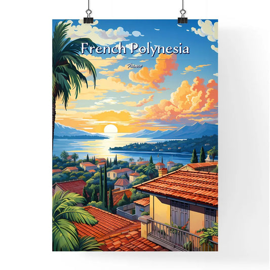 On the roofs of French Polynesia, France - Art print of a city street with cars and buildings