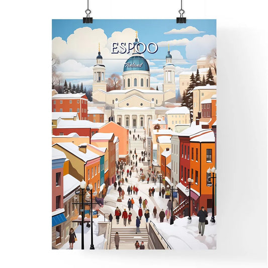 Espoo, Finland - Art print of a group of people walking down a snowy street