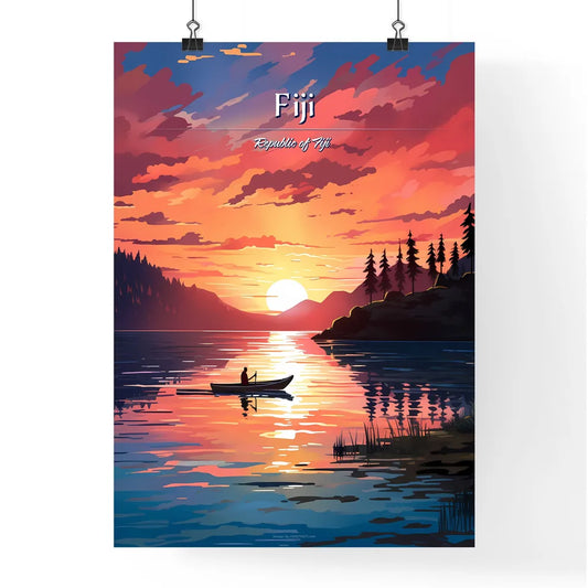 Fiji, Republic of Fiji - Art print of a person in a boat on a lake