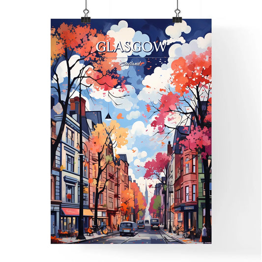 Glasgow, Scotland - Art print of a street with trees and buildings