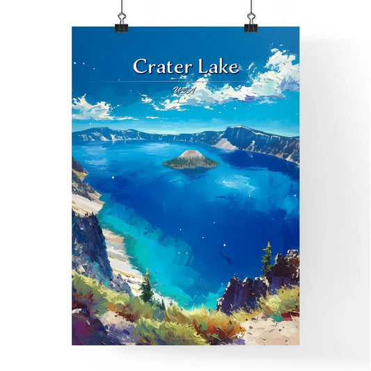 Crater Lake, USA - Art print of a large body of water with a small island in the middle