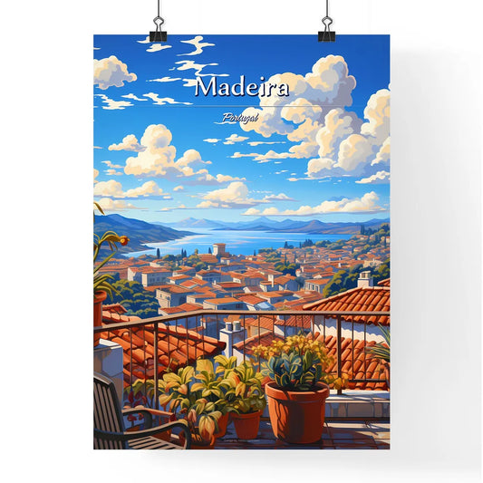 On the roofs of Madeira, Portugal - Art print of a balcony overlooking a city