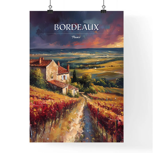 Bordeaux, France - Art print of a painting of a house in a vineyard