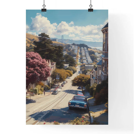 Poster of San Francisco - Art print of a street with cars and buildings on the side