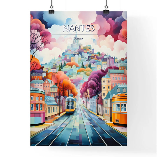 Nantes, France - Art print of a painting of a city street with trolleys and trees
