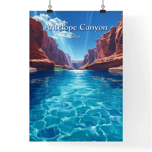 Antelope Canyon, USA - Art print of a blue water with sun rays shining through it