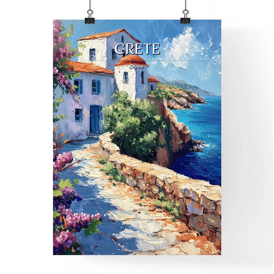 Crete, Greece - Art print of a painting of a building on a cliff by the ocean
