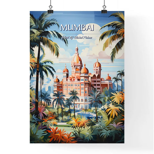 Mumbai, Hotel Taj Mahal Palace - Art print of a painting of a building with palm trees