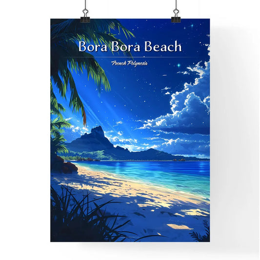 Bora Bora Beach, French Polynesia - Art print of a beach with palm trees and blue water
