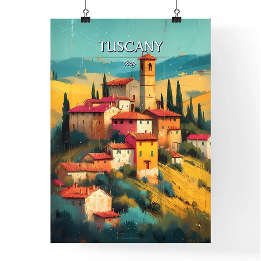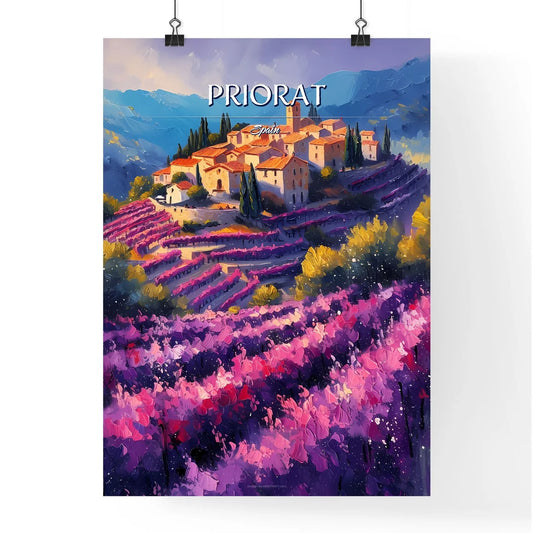 Priorat, Spain - Art print of a painting of a village in a field of purple flowers