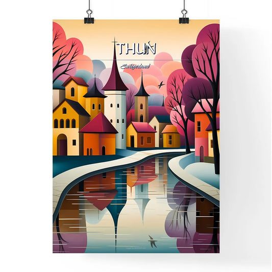 Thun, Switzerland - Art print of a colorful landscape with a river and houses