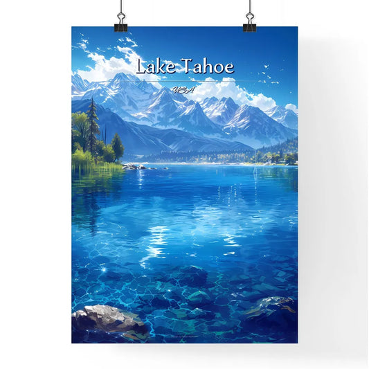 Lake Tahoe, USA - Art print of a lake surrounded by mountains