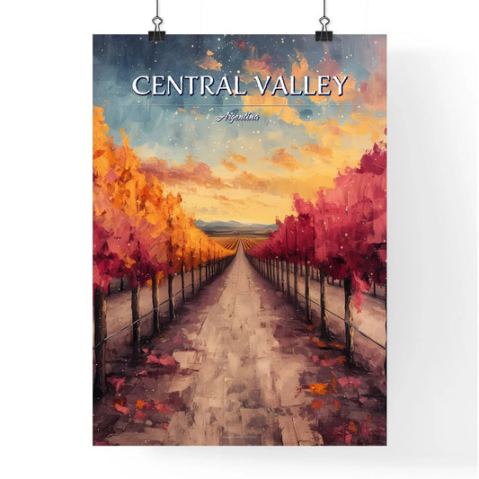 Central Valley, Argentina - Art print of a painting of a road with trees in the middle
