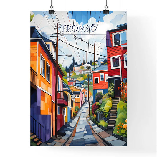 Tromsö, Norway - Art print of a painting of a street with colorful houses