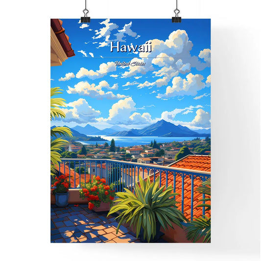 On the roofs of Hawaii, United States - Art print of a balcony with a view of a town and mountains