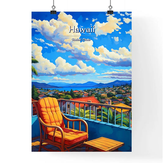 On the roofs of Hawaii, United States - Art print of a chair on a balcony overlooking a city