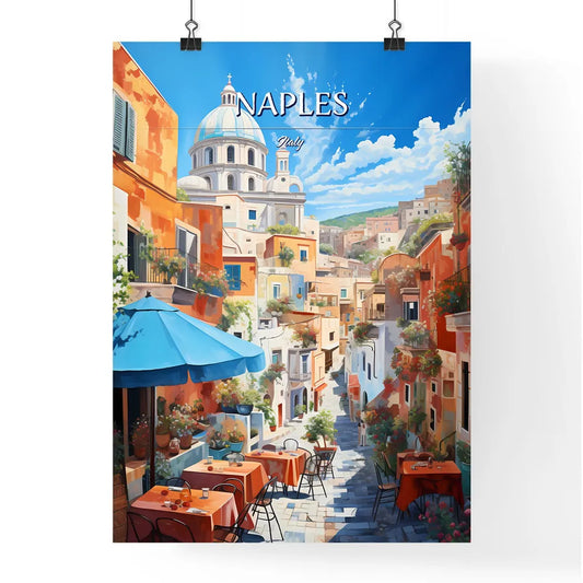 Naples, Italy - Art print of a street with tables and chairs in a city