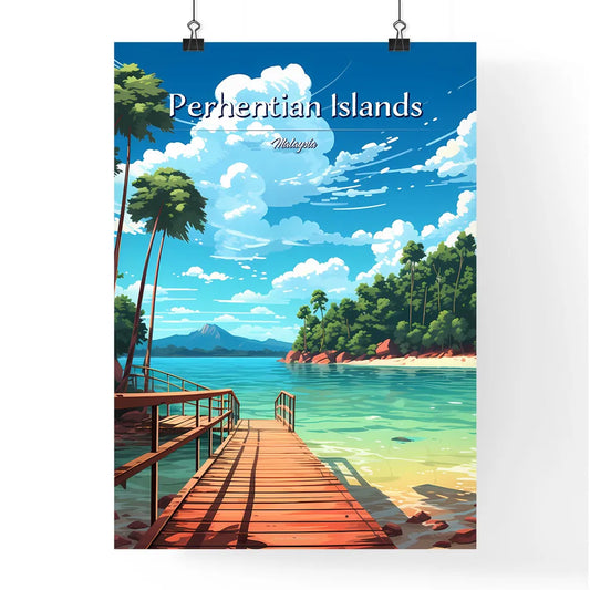 Perhentian Islands, Malaysia - Art print of a dock on a body of water with trees and mountains