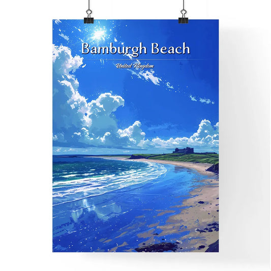 Bamburgh Beach, United Kingdom - Art print of a beach with a castle and blue water